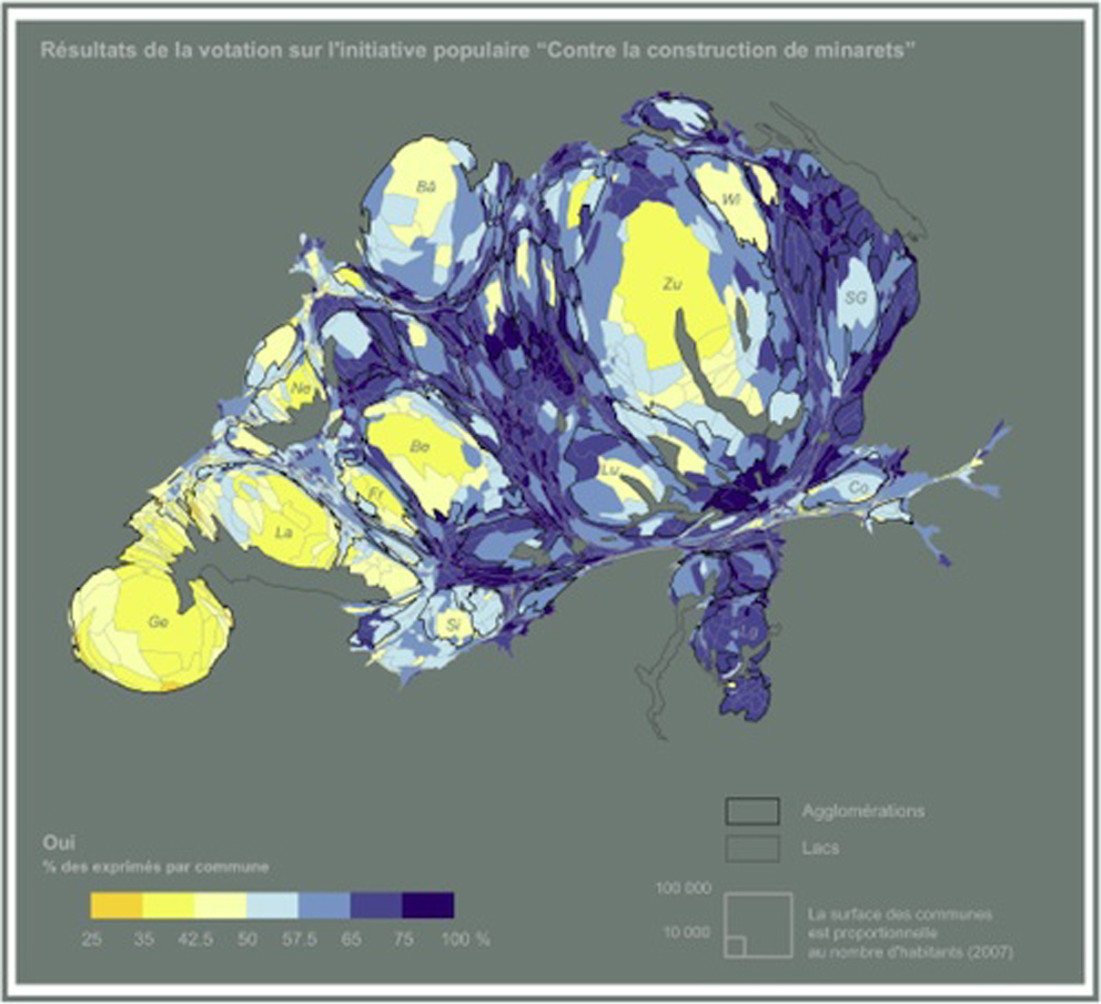 [img: Lévy & Chavanier, A Cartogramme: Switzerland: Referendum on Minarets, 2009]